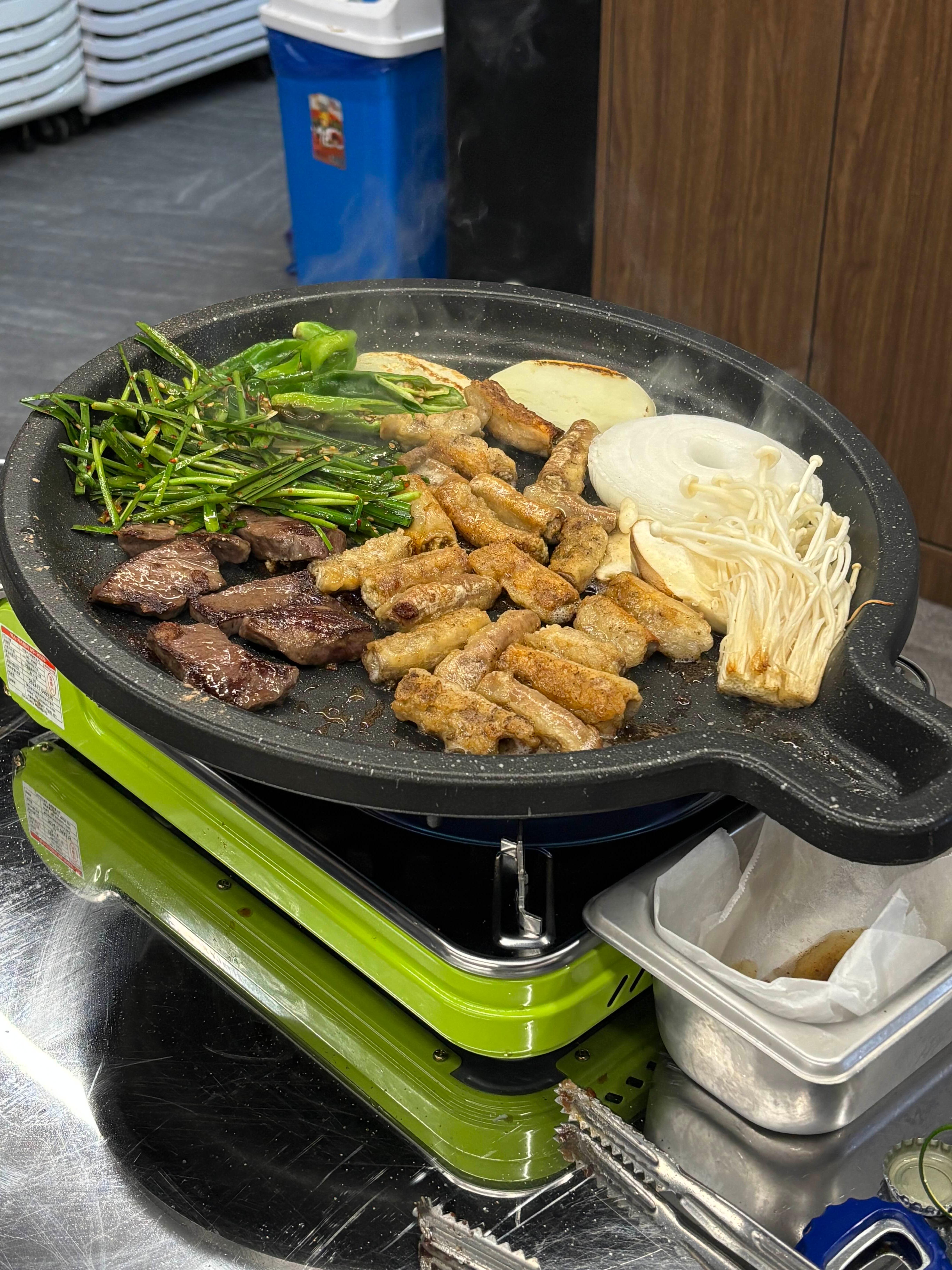 함께 구워주는 부추랑 양파, 감자,고추도 곁들여 먹으면 느끼함 없이 끝까지 맛있게 즐길 수 있었다.