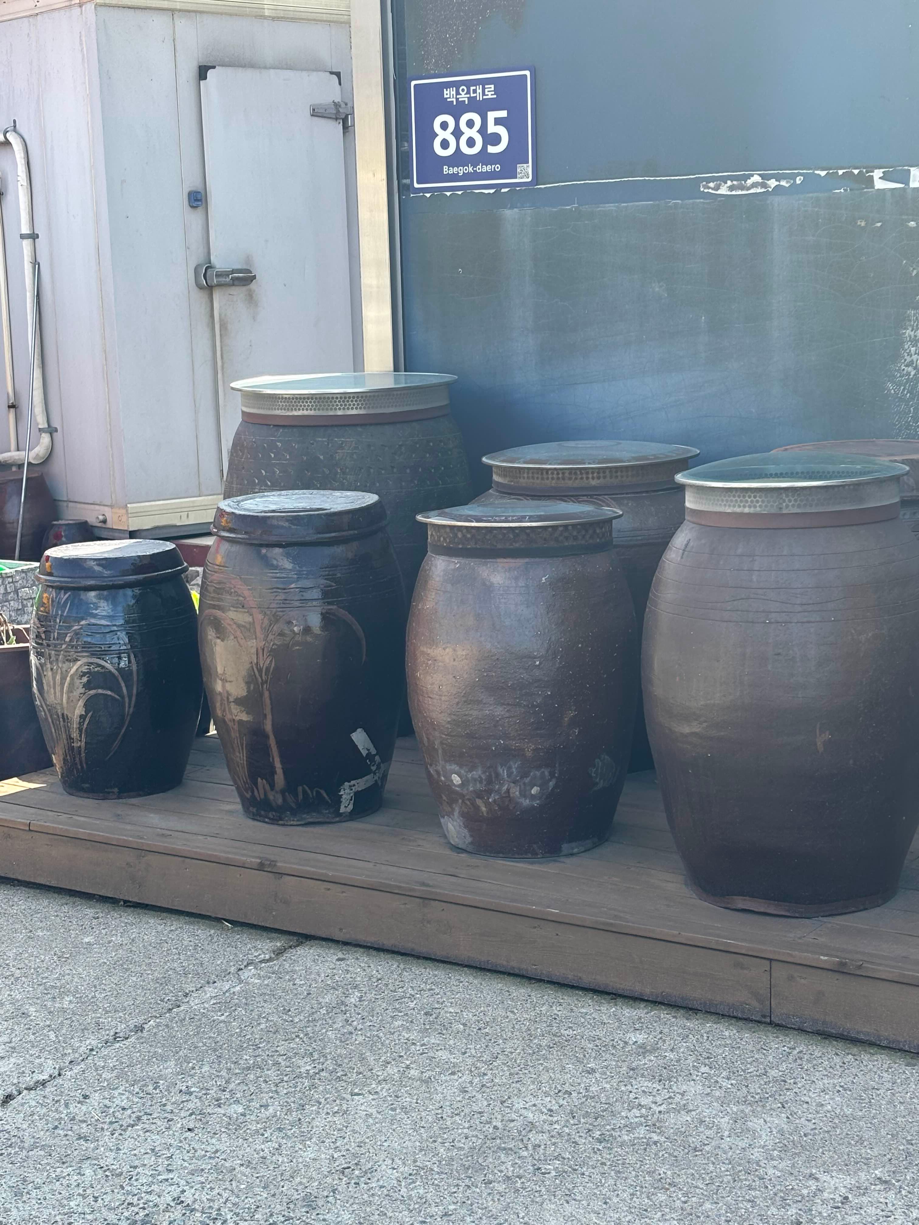멀리서도 눈에 띄는 간판, 그리고 앞마당 가득한 장독대가 있었고,